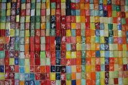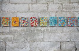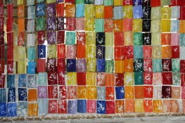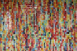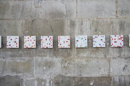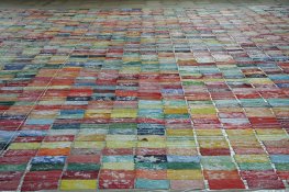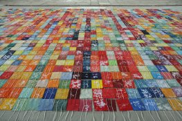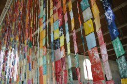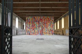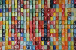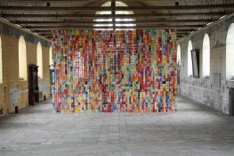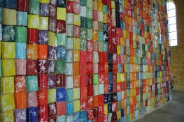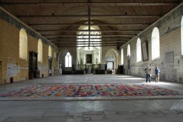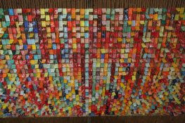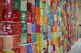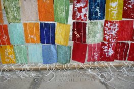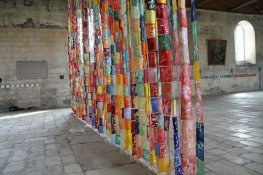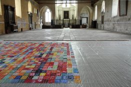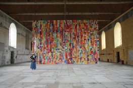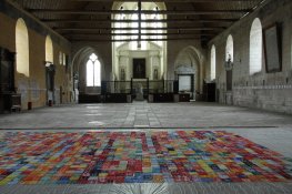 Installation in situ de 2176 couleurs uniques, 6m60 x 10m50, huile et acrylique sur toile de lin, ficelle, épingles – Hôtel-Dieu de Tonnerre